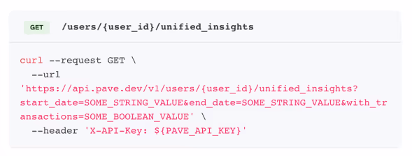 We’ve observed that our customers are calling our upload_transactions endpoint and various insight endpoints (recurring_expenditures, ritual_expenses, recurring_income). This requires developers to maintain multiple API calls, and write code to parse each response. The unified insights endpoint reduces the code required to receive Pave API insights.