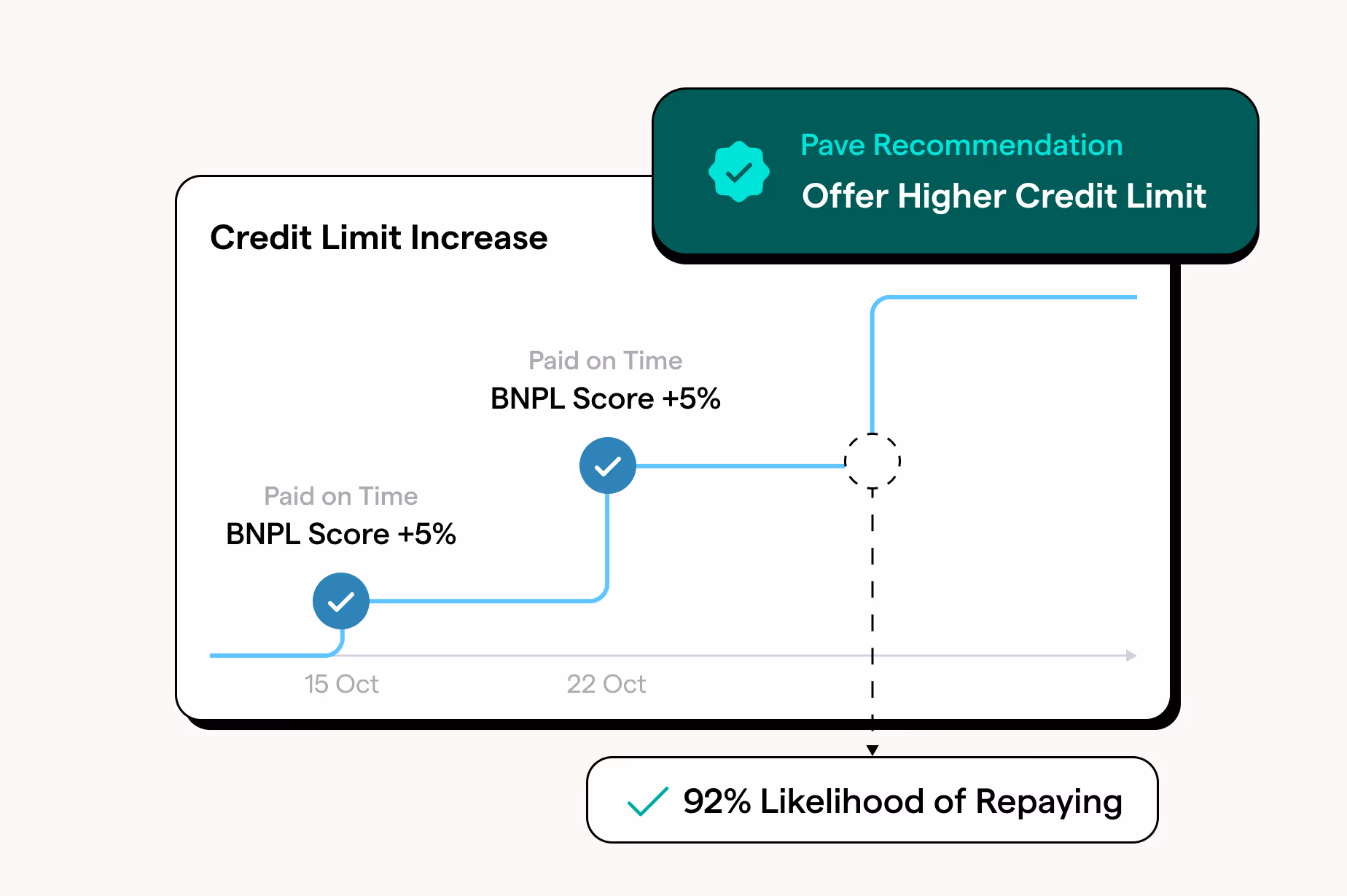 Utilize Pave’s Cashflow-driven Scores to quickly and accurately determine which users are likely to make upcoming payments based on their cashflows.