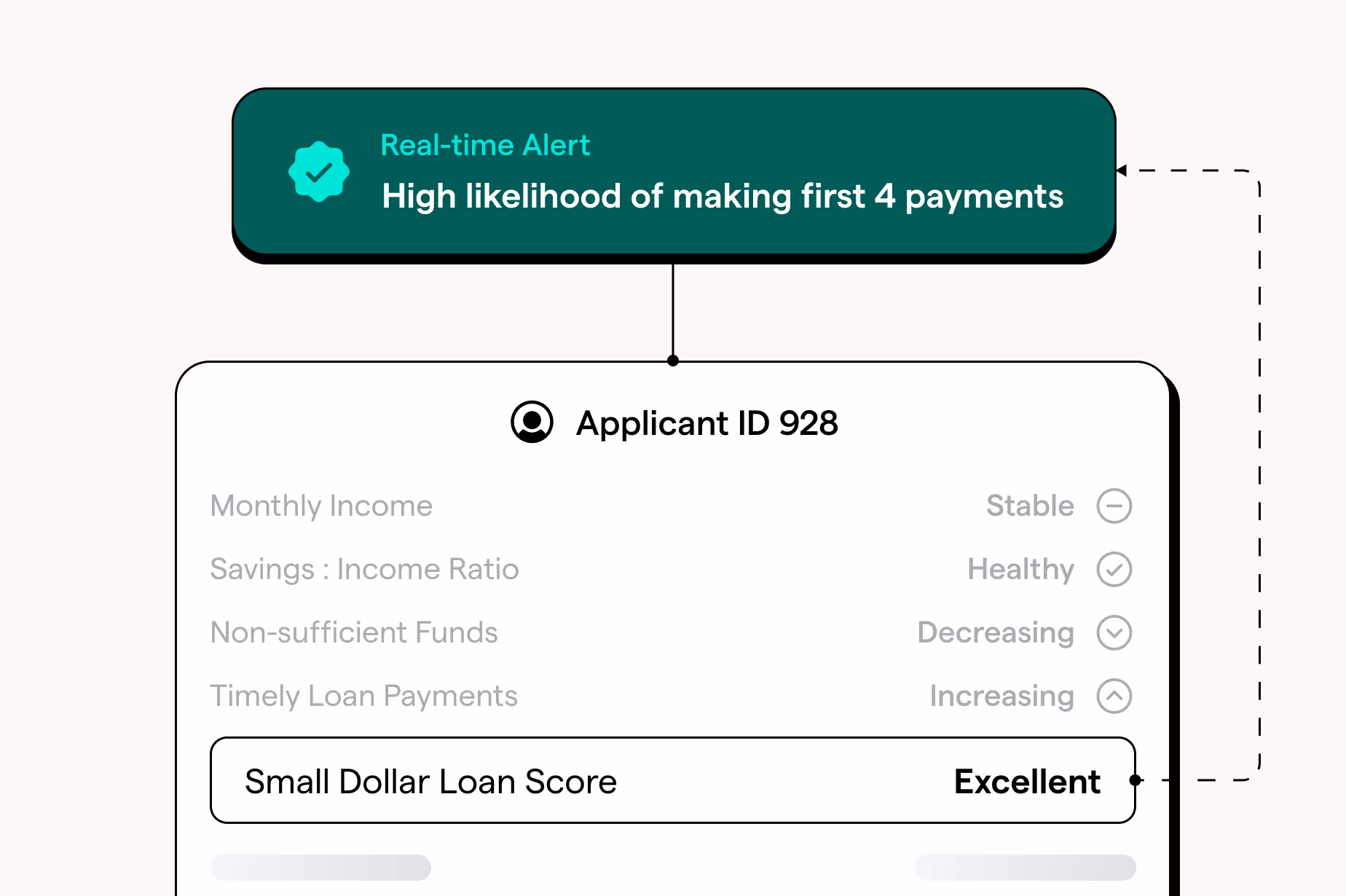 Offer higher amounts and drive growth with our Cashflow Scores, built on Cashflow Attributes and repayment history. Increase approvals and retention by identifying healthy, underserved borrowers.